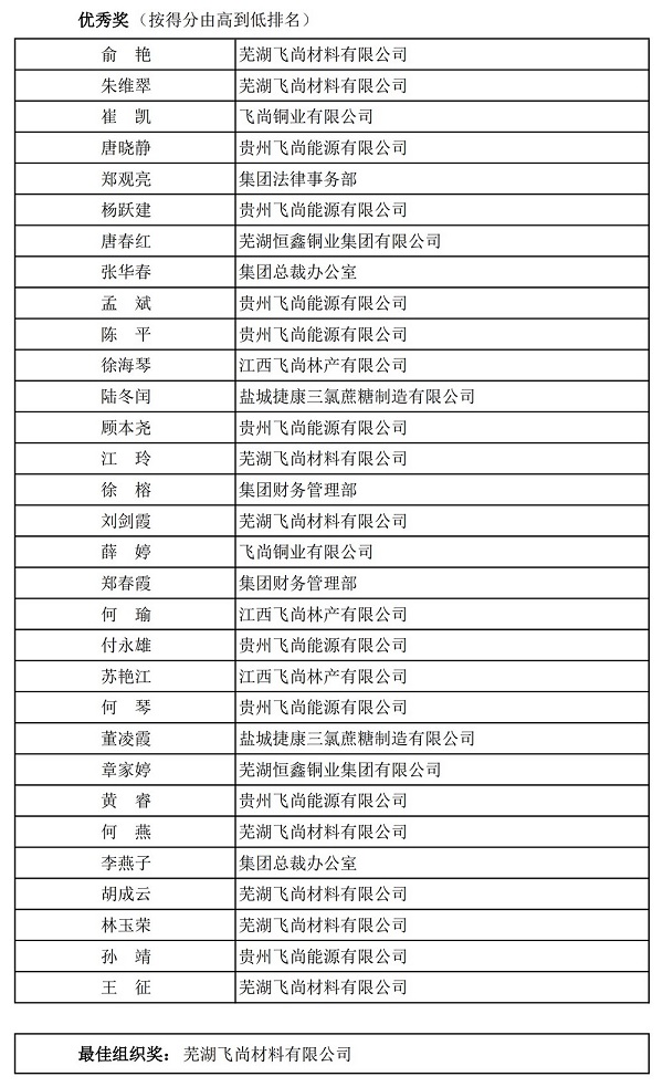 按照比赛法则,每场直播出题25道,试题从已宣布的题库中随机抽取,参赛者按抢答前后挨次摆列得分,以微信群内显现和记实的挨次为准。每道题取前10名准确谜底,别离取得10~1分。两场比赛竣事,按照终究得分,评出一等奖2名、二等奖4名、三等奖7名(第12、13名得分不异)、优异奖31名(第41—44名得分不异)。同时,综合评估企业员工到场人数、得分人数、得分总数及构造空气等,评出最好构造奖。